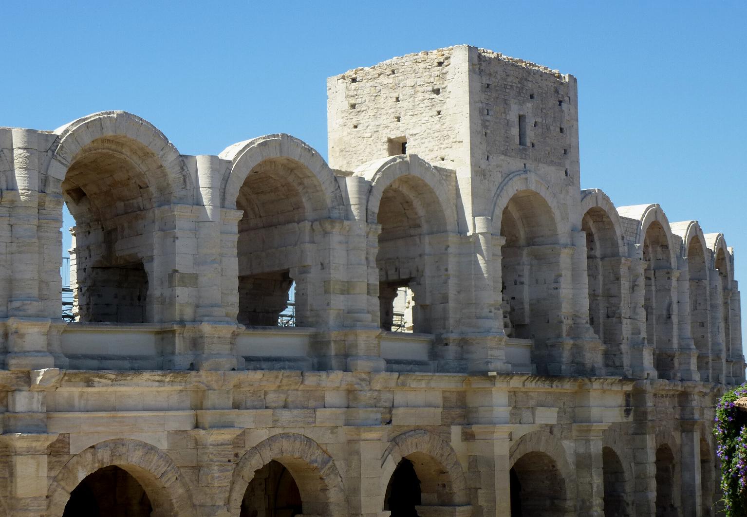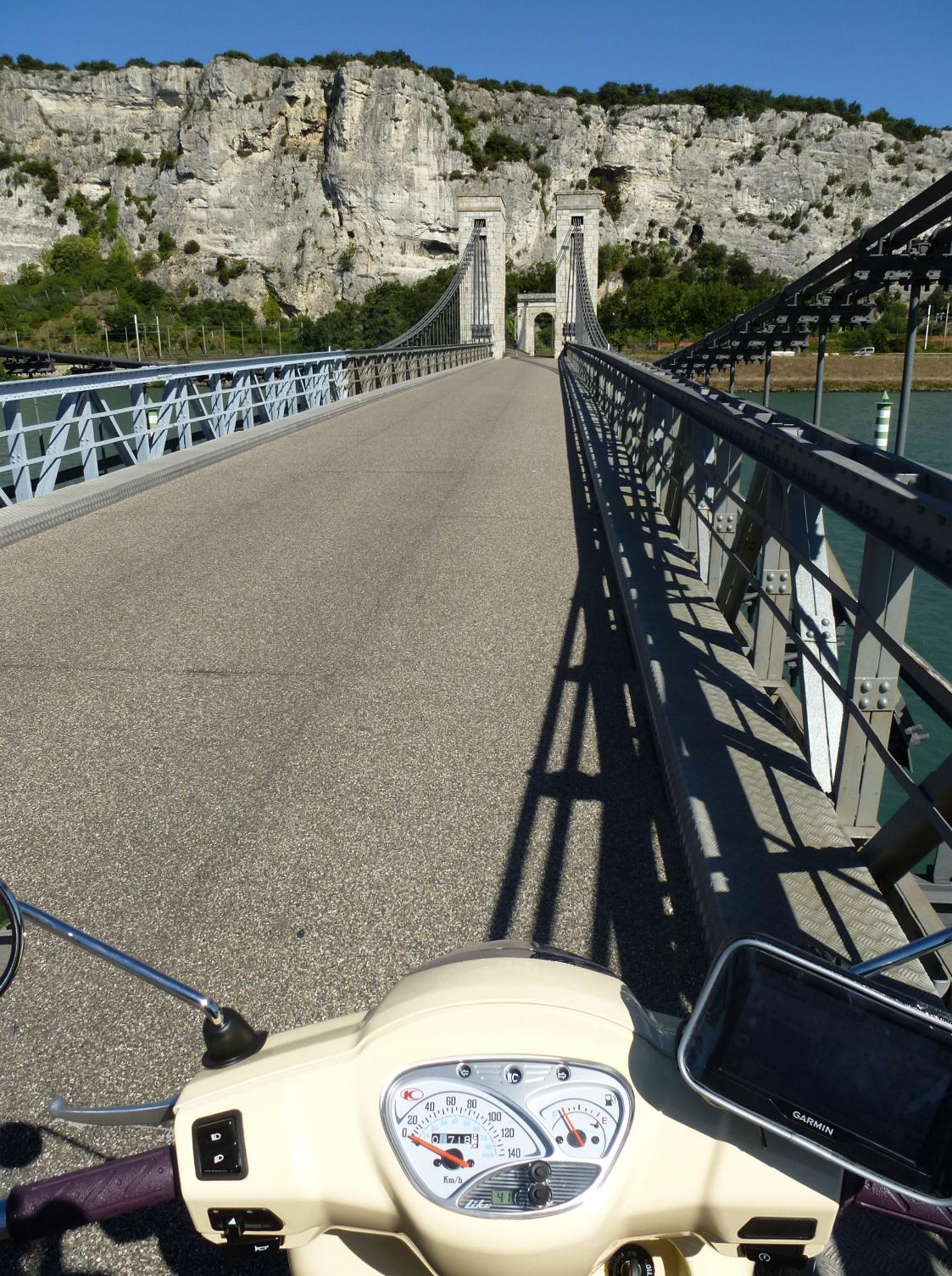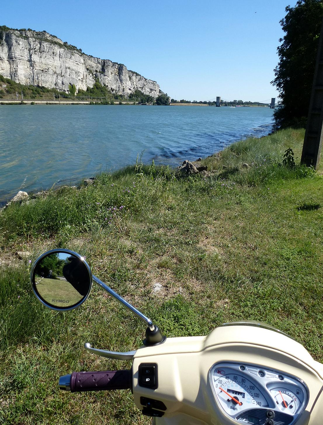 Im Schnitt lege ich momentan täglich etwa 230 km zurück. Viele Stunden auf dem Roller, nach mehr als acht dröhnt allerdings der ganze Körper. Erste Zypressen tauchen auf, provenzalische Landschaft durch Weinfelder, warm: Im T-Shirt fahren. Die römischen Arenen, Orange, über Chateau-Neuf-du-Pape nach Avignon, dessen berühmte Brücke, Arles.