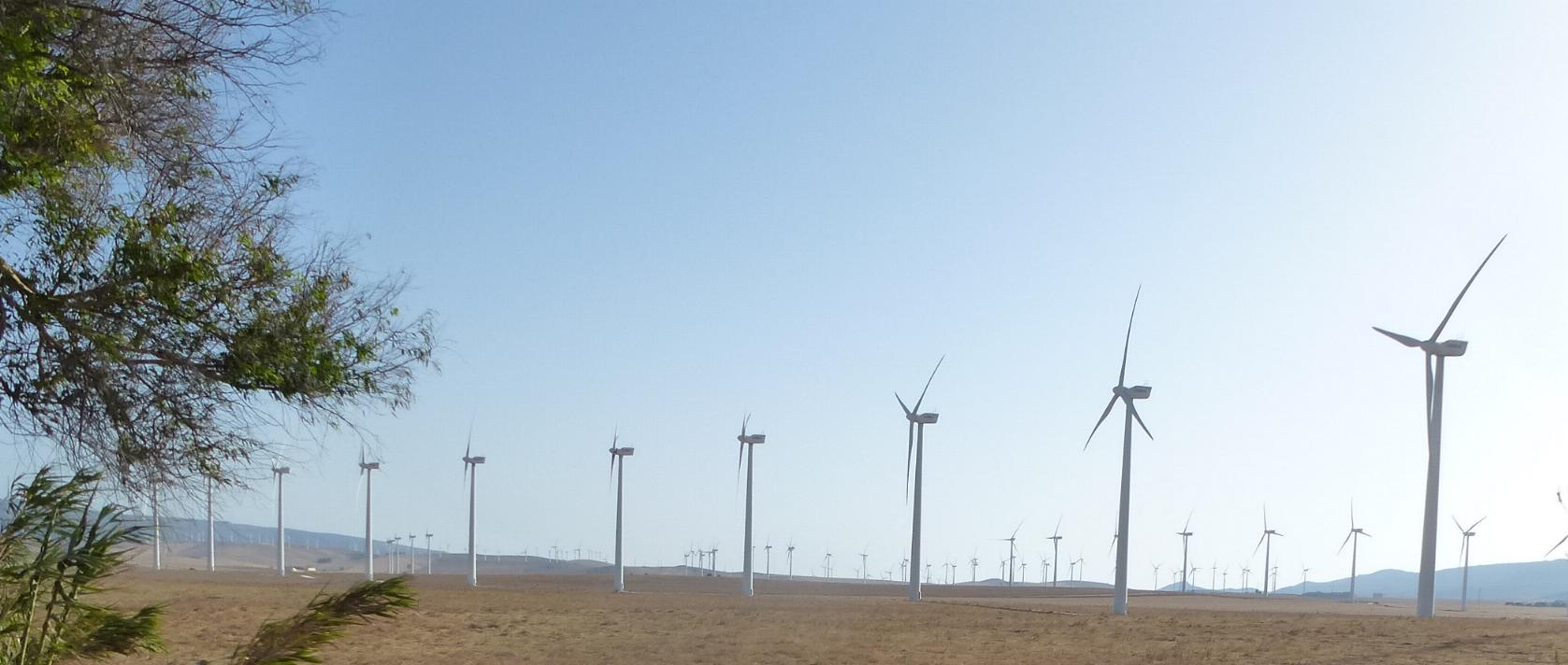 Riesige Windräderfelder stehen jetzt hier über mehrere Quadratkilometer dicht nebeneinander.