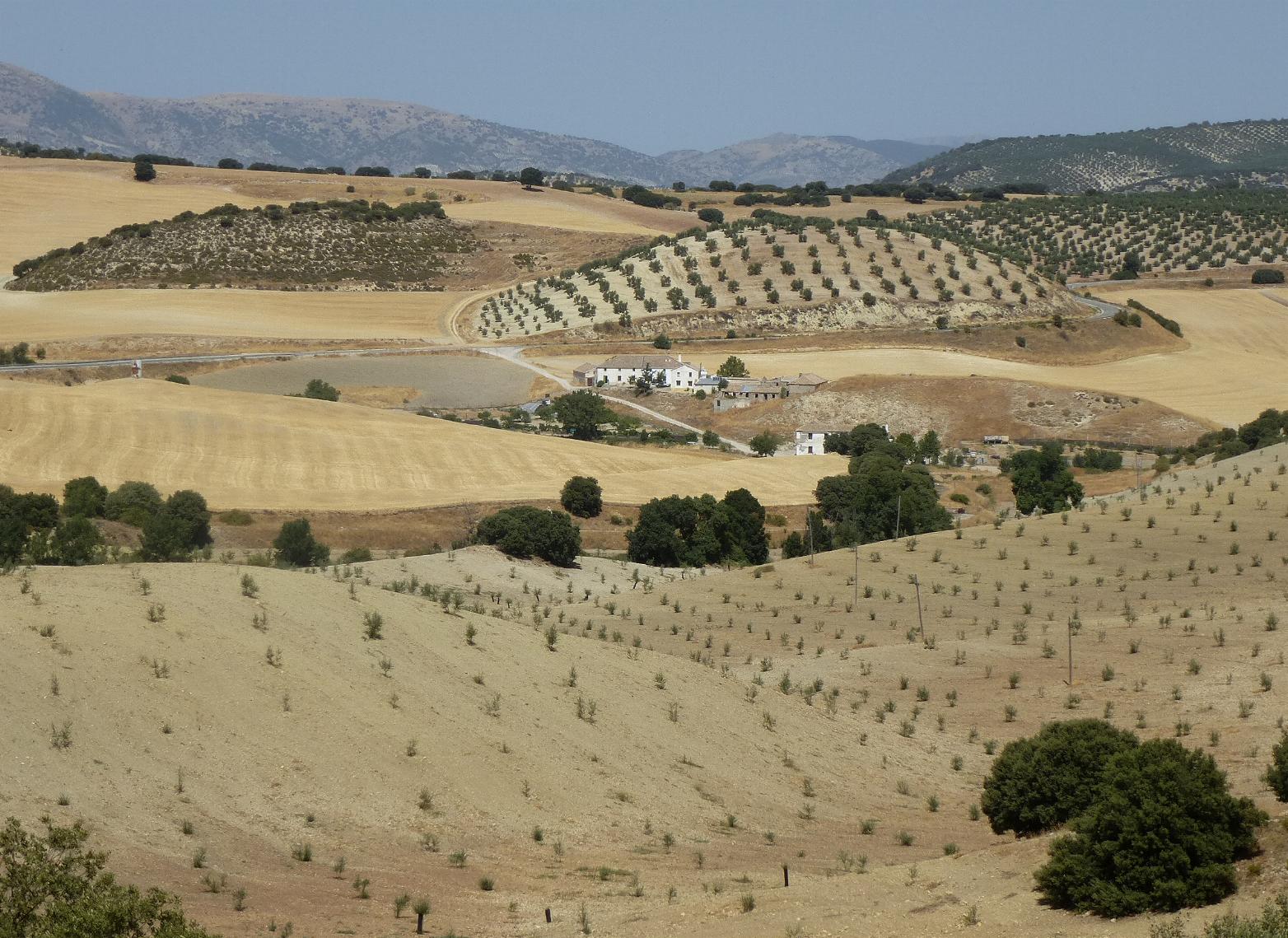 Ich entschloss mich dazu, die Küste ganz zu verlassen und über Granada ins Landesinnere auszuweichen. Am fast verkehrslosen Sonntagvormittag fuhr ich erst die Küste entlang und dann durch schöne Landschaft bergauf. Hinter Granada begann die Hitze.