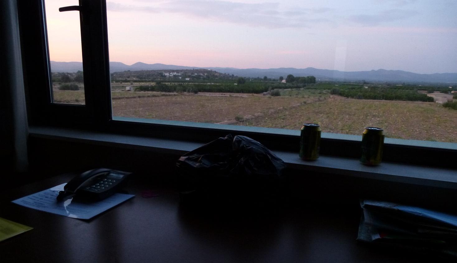 In Beas de Segura, zwischen Granada und Albacete, hatte es um 20 Uhr noch 36 °C. Ich kam ausgetrocknet an, da einerseits durch den Fahrtwind kein so starkes Hitze- und Durstgefühl aufkommt, und andererseits gerade durch den Fahrtwind eine starke Austrocknung erfolgt, und ich hatte wieder mal die sonntägliche Unmöglichkeit des Einkaufens übersehen und musste mit einem Liter Eistee und 0,33 L Dosenbier auskommen.