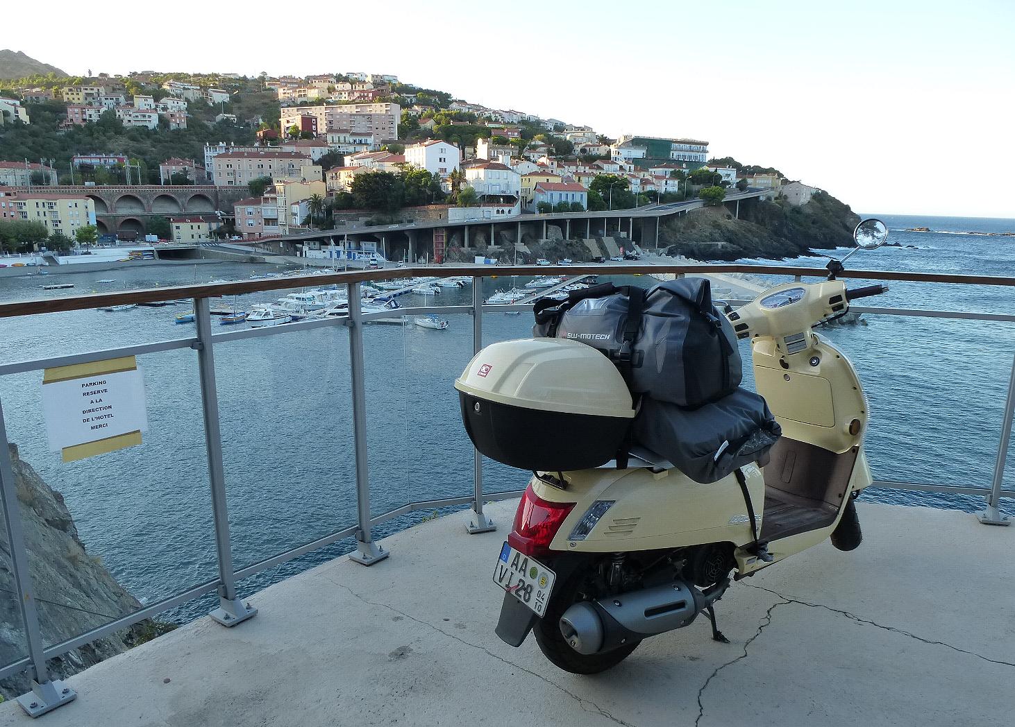 Es gibt ja böse Zungen die behaupten, dass das Fahren mit Navi der erste Schritt zum betreuten Wohnen sei.  Cerbére scheint sich in 33 Jahren nicht verändert zu haben, es sieht nur alles etwas heruntergekommener aus. Die Preise sind sofort höher als im 2 km enfernten spanischen Portbou. Hier in Cerbére zahlte ich gleich mal € 18.- für ein sehr zähes Stück blutiges Fleisch und ein kleines Bier und musste froh sein, am Sonntagabend überhaupt ein geöffnetes Restaurant zu finden. Weiß der Teufel, warum ich dachte Cerbére sei spanisch, sonst hätte ich in Portbou Station gemacht.