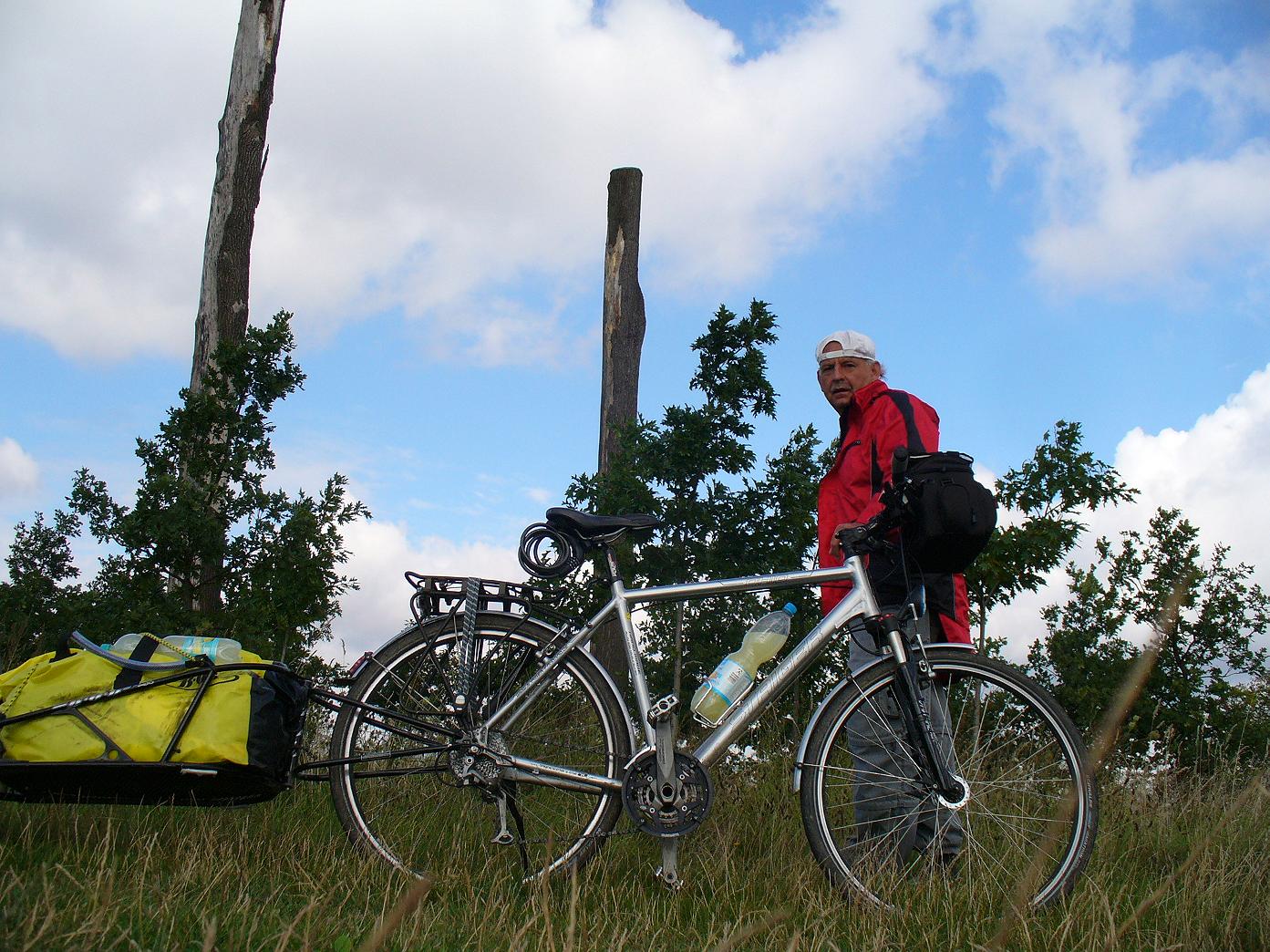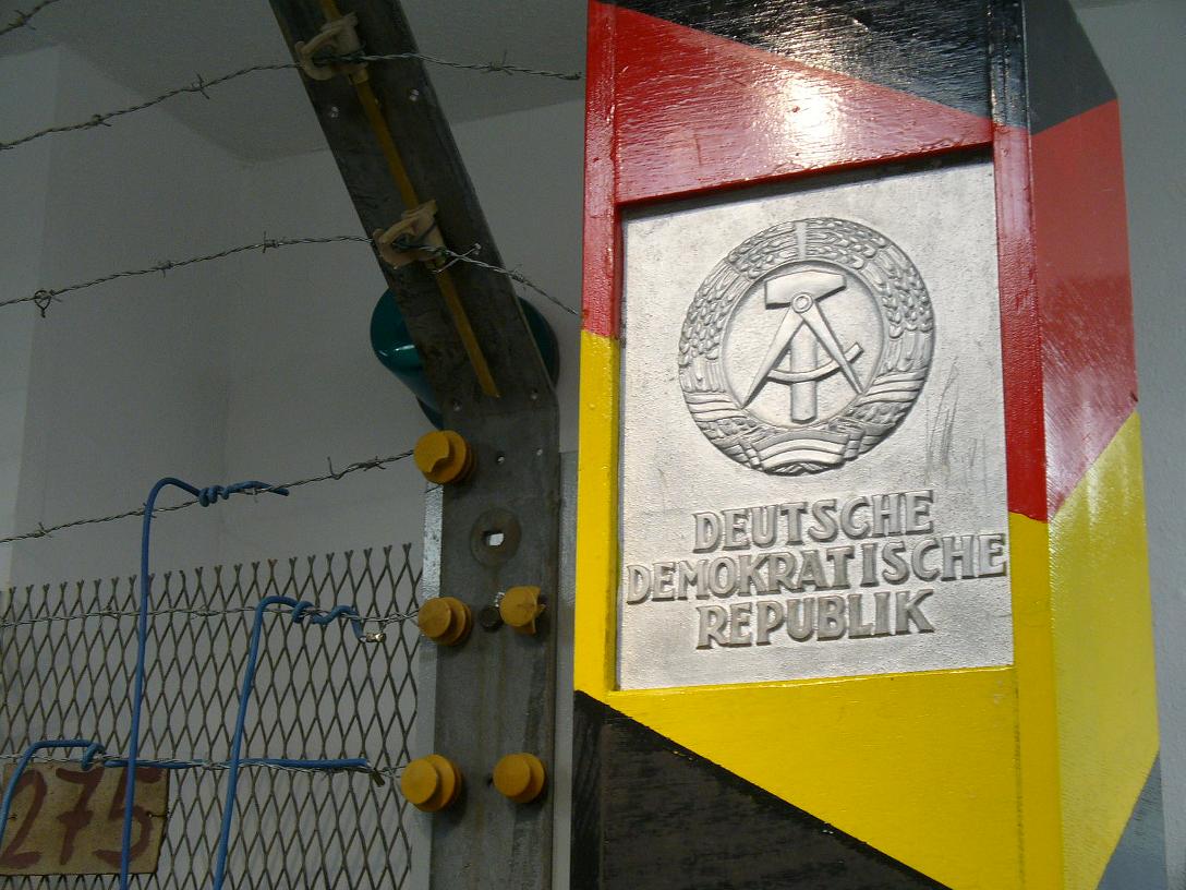 Gpx-Track:  Bis vier Uhr nachmittags ein radlerisch unschöner Tag. Es war kalt. Der Wind kam überwiegend schräg von vorn. Die verschiedenen Betonlochplattentypen des Kolonnenweges der innerdeutschen Grenze kenne ich inzwischen auswendig, ihre Zahl der Löcher, quer oder längs liegend, gut oder schlecht verlegt. Das Grenzlandmuseum Eichsfeld ist sehr schön gemacht. Danach geht es übel auf einem Kolonnenweg bergauf. In diesem Streckenabschnitt scheinen die Orte unten im Tal zu liegen, die Grenze und der Grenzradweg verlaufen aber jeweils über die höchsten Erhebungen der Umgebung. Pferdeberg, Pfaffenberg, Silberberg, Auberg. Durch Böseckendorf habe ich mich durchgequält, ohne die ganz besondere Geschichte dieses Ortes zu beachten. Nach 50 Kilometern, die Harzüberquerung steckte noch in den Knochen, war ich müde, motivationslos. Die Sonne war kurz am Vormittag da, danach herrschte ein kalter Westsüdwest: Pullover und Windjacke. Das Notaufnahmelager Friedland ließ ich rechts links liegen. Es ging gegen den Wind nicht recht voran, die Landschaft bergig, monotone Treterei, um südliche Breite zu gewinnen. Die Wende kam nach Oberstein beim Eintritt in den Werra-Leine-Fernradweg. An der Werra entlang: keine Höhen, guter Radweg: Es ging voran, der Wind hatte sich gelegt, am Fluss war es etwas wärmer, und auch der Himmel lichtete sich etwas. In Werteshausen allerdings verwechselte ich erst mal die Himmelsrichtung und fuhr einige Kilometer die Werra hinunter, statt hinauf. Ein sehr schöner Radwegteil liegt zwischen Oberrieden und Lindewerra. In Wahlhausen war die Luft im Anhängerrad weg. Dieser Reifenmantel hat offensichtlich nicht die Qualität der „Schwalbe Marathon“ – Fahrradreifen.  Tag 15