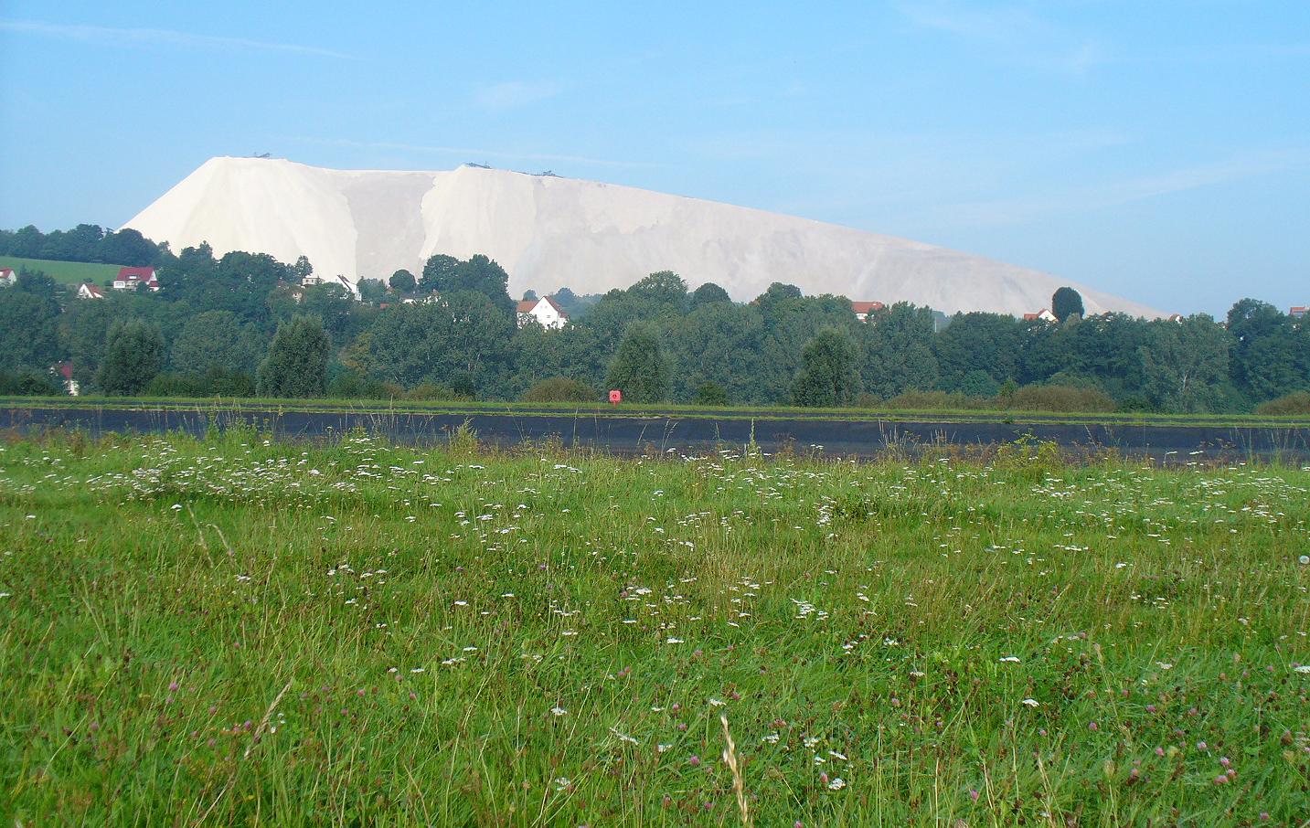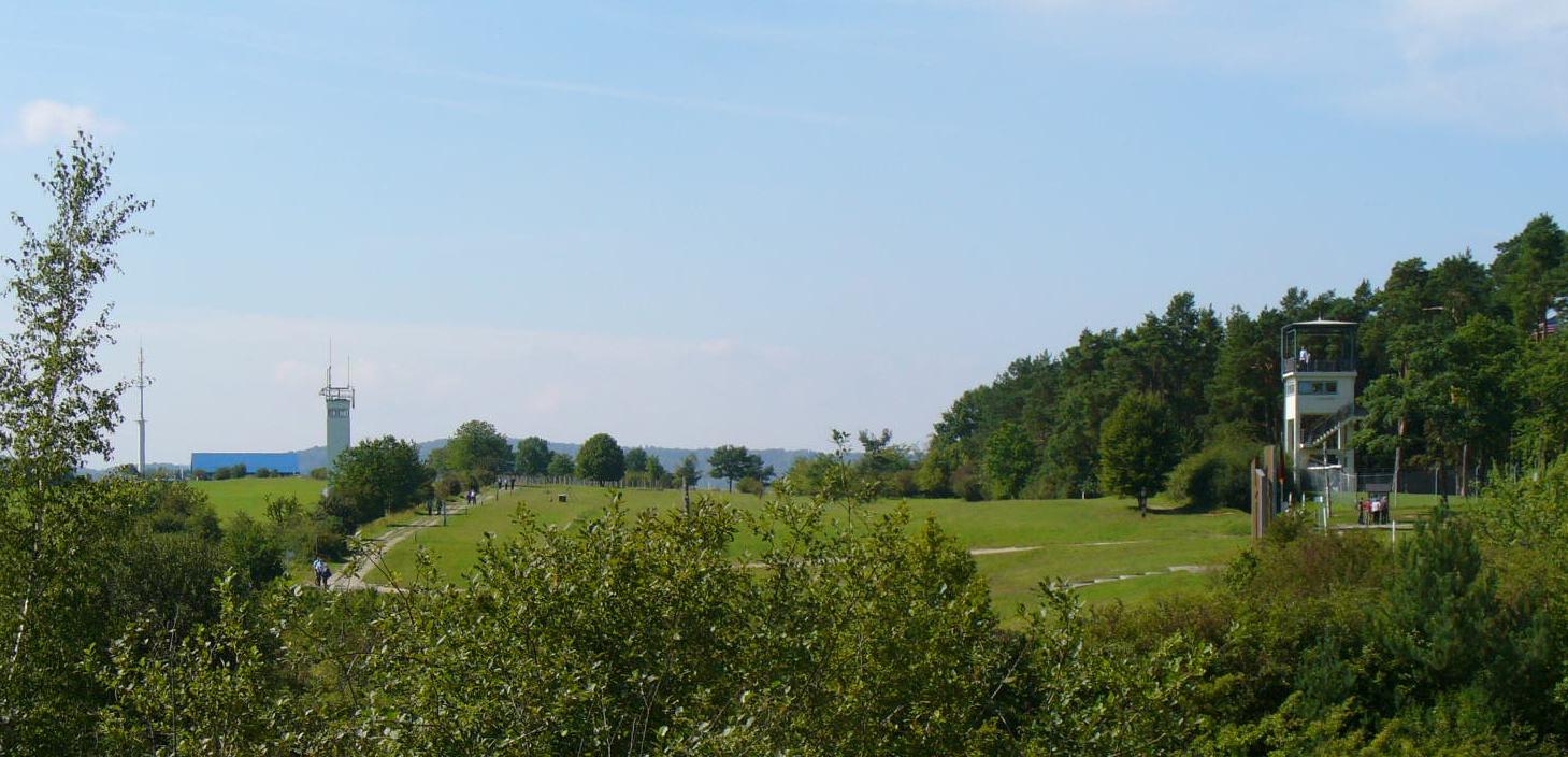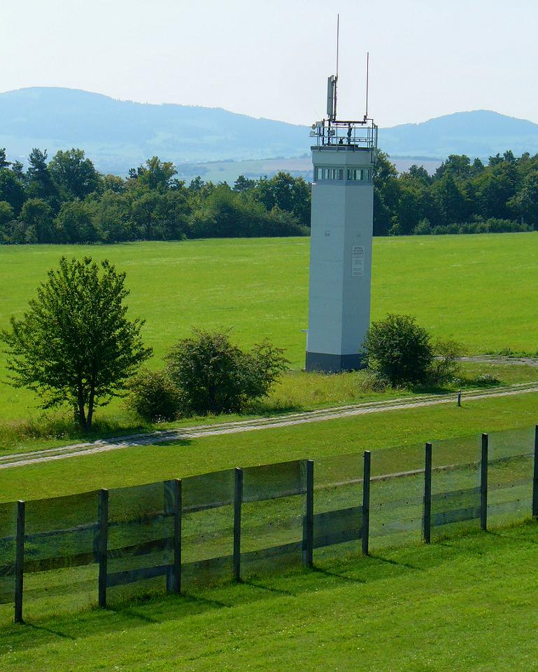 Nach Point Alpha ging es alles wieder runter und weiter die Ulster entlang. Von Batten führt ein langer steiler Weg über mehrere Kilometer bergauf, ohne ebene Zwischenstücke zum Erholen, der Radführer vermerkt, es geht „so steil aufwärts, dass ein Normalsterblicher schieben muss“. Das ging natürlich nicht an für mich, ich meine das Schieben, und so wurde es übel: Der Tag hatte bei 280m Meereshöhe begonnen und erreichte beim Punkt „Hoel“ knapp 800 Höhenmeter. Ohne schieben. Ob der Radweg unbedingt über Frankenheim, den höchstgelegenen Ort der Rhön, also einem deutschen Mittelgebirge, führen muss, sei dahingestellt. Danach folgte noch ein Streckenstück auf einer Art Wildwechselpfad, der im Radführer nicht mit der Karte zu finden war, sondern nur mit der beigefügten Wegbeschreibung („man passiert die Gaststätte Schweinebucht“, „hinter den Büschen links hoch“). Bis Fladungen insgesamt 800 Höhenmeter laut Höhenprofil; das enthält aber nicht alle aufs und abs, tatsächlich etwa 1000m. Erst halb sechs, doch die nächsten Kilometer sehen bergig aus, und die nächste Übernachtungsmöglichkeit ist 46km entfernt. Nolens volens, bei bestem Wetter, Sonnenschein und Windstille, Abbruch in Fladungen, nach nur 75km (Tacho) bzw. 77km (GPS), in einem verschlafenen oberfränkischen Zonenrandstädtchen. Ach: Auf der Fahrt sind nah bei mir zwei Schwarzstörche vor mir aufgeflogen, bis ich allerdings die Kamera in Anschlag gebracht hatte, waren sie schon einige Hundert Meter weiter gelandet. Tag 17