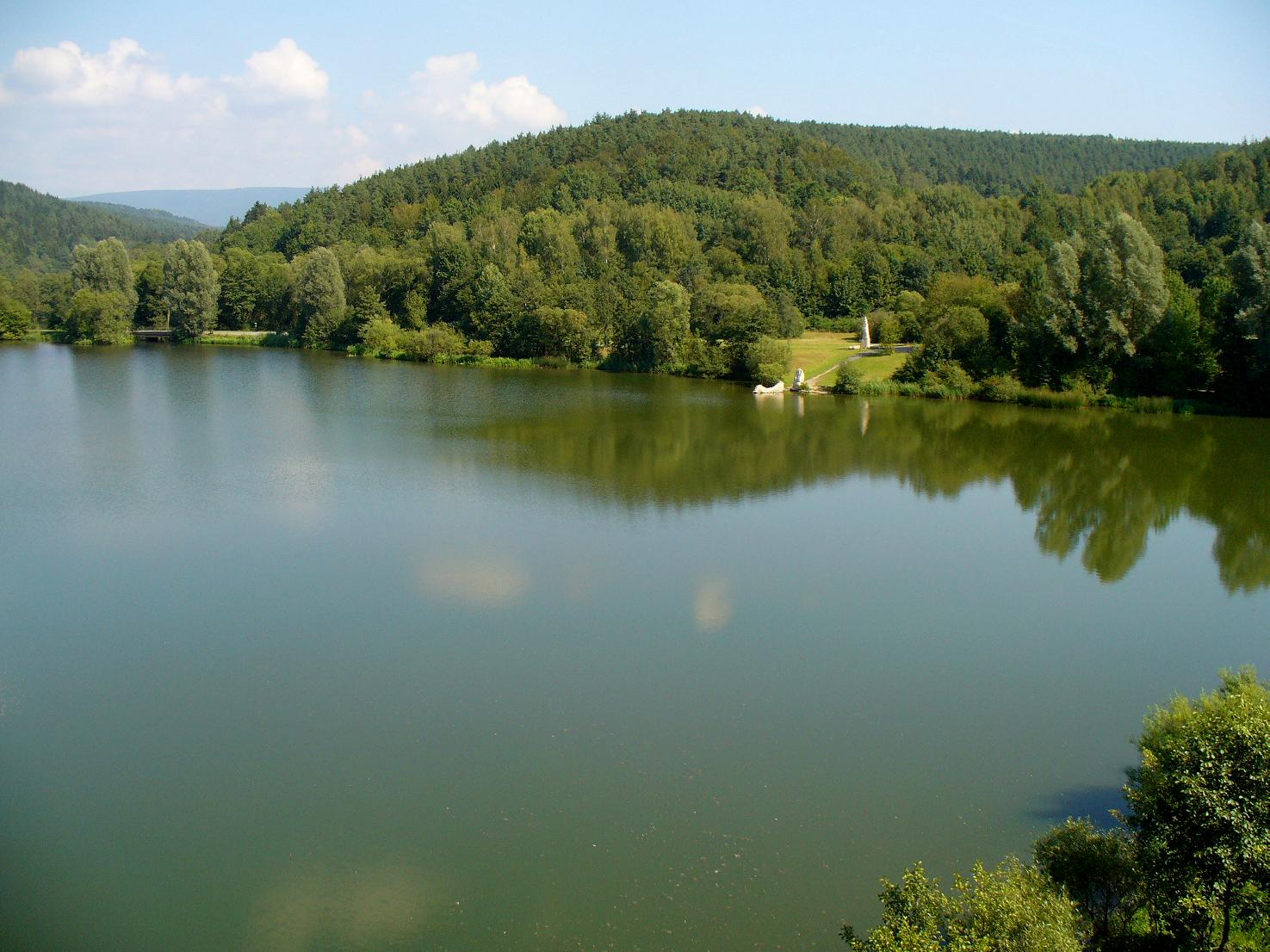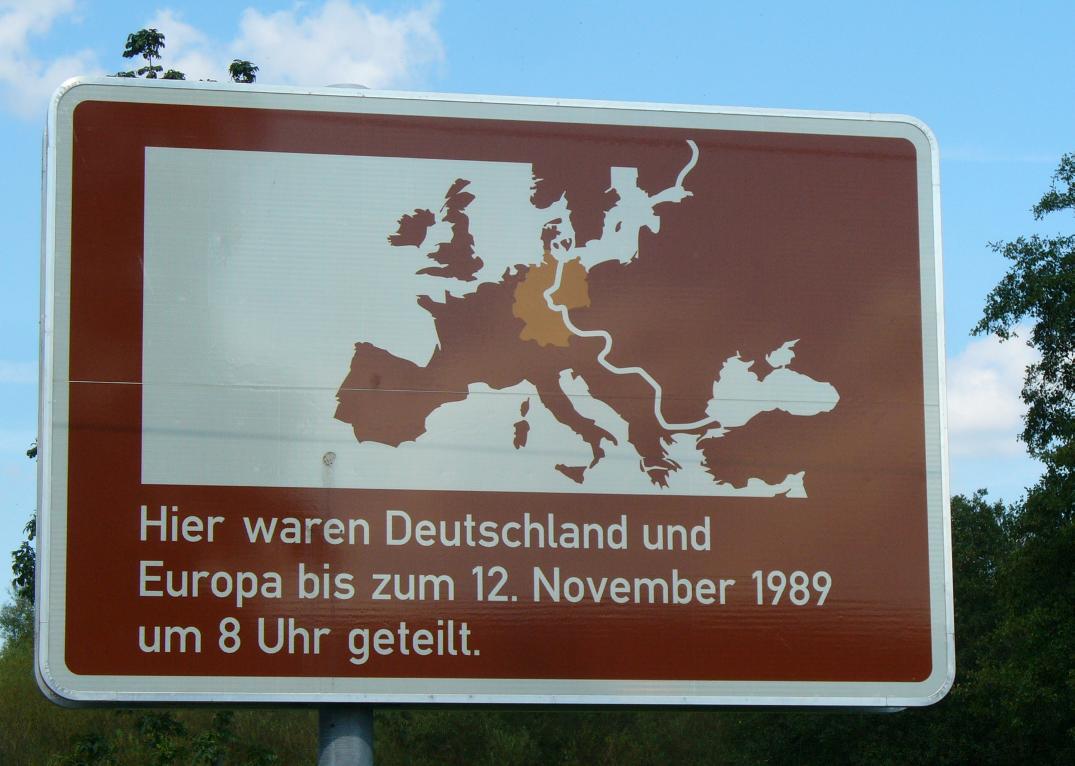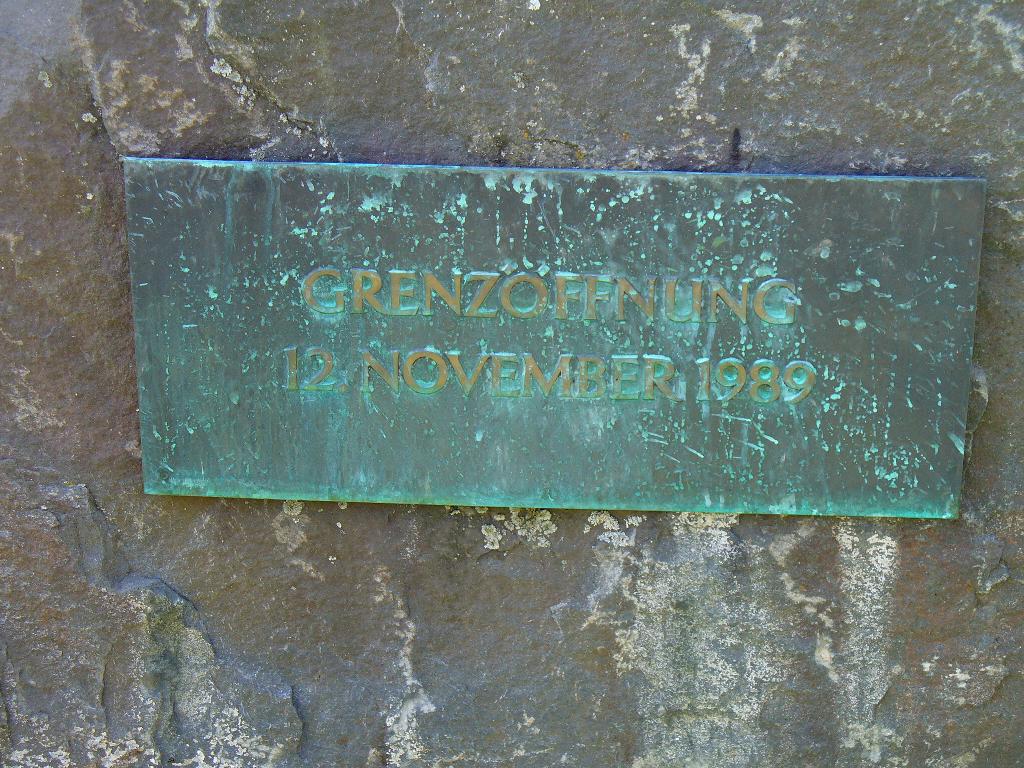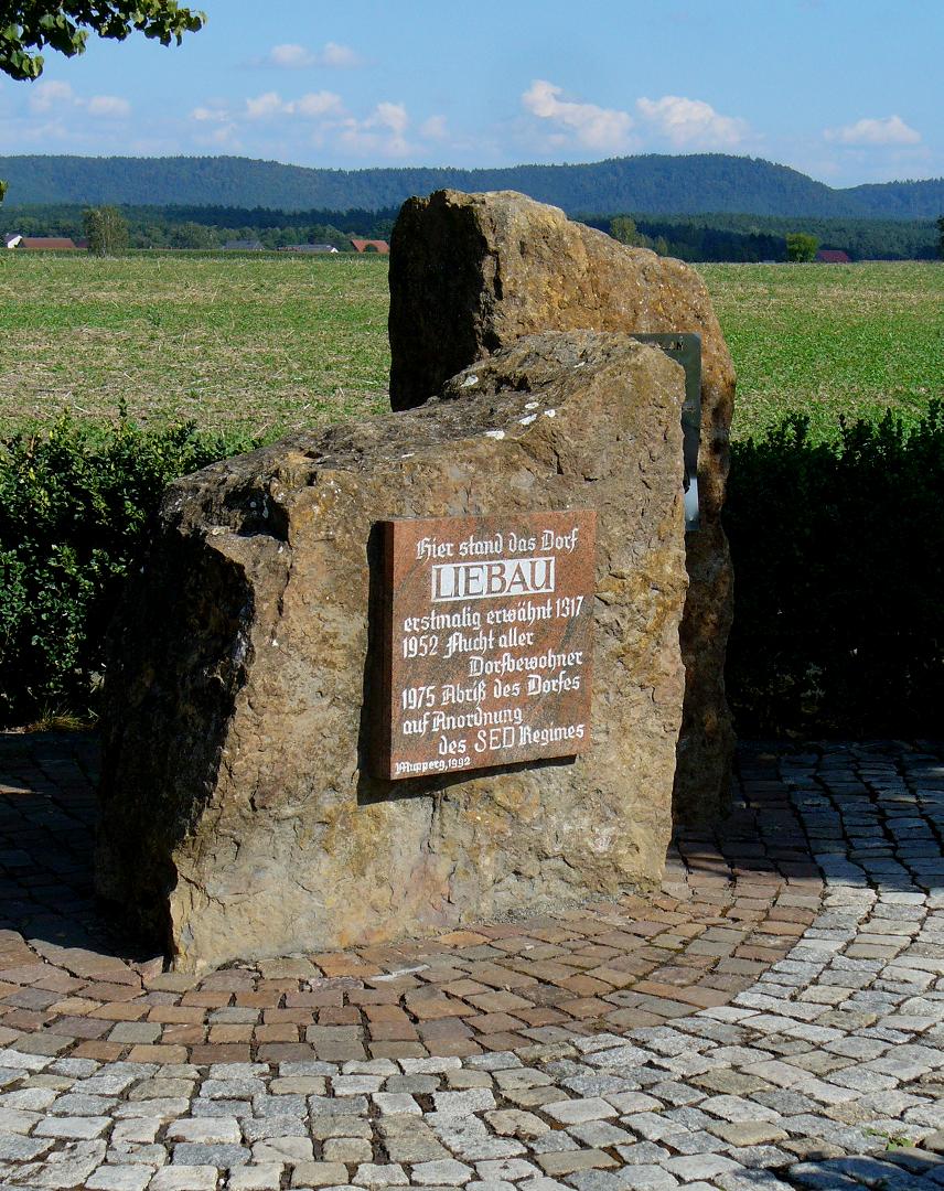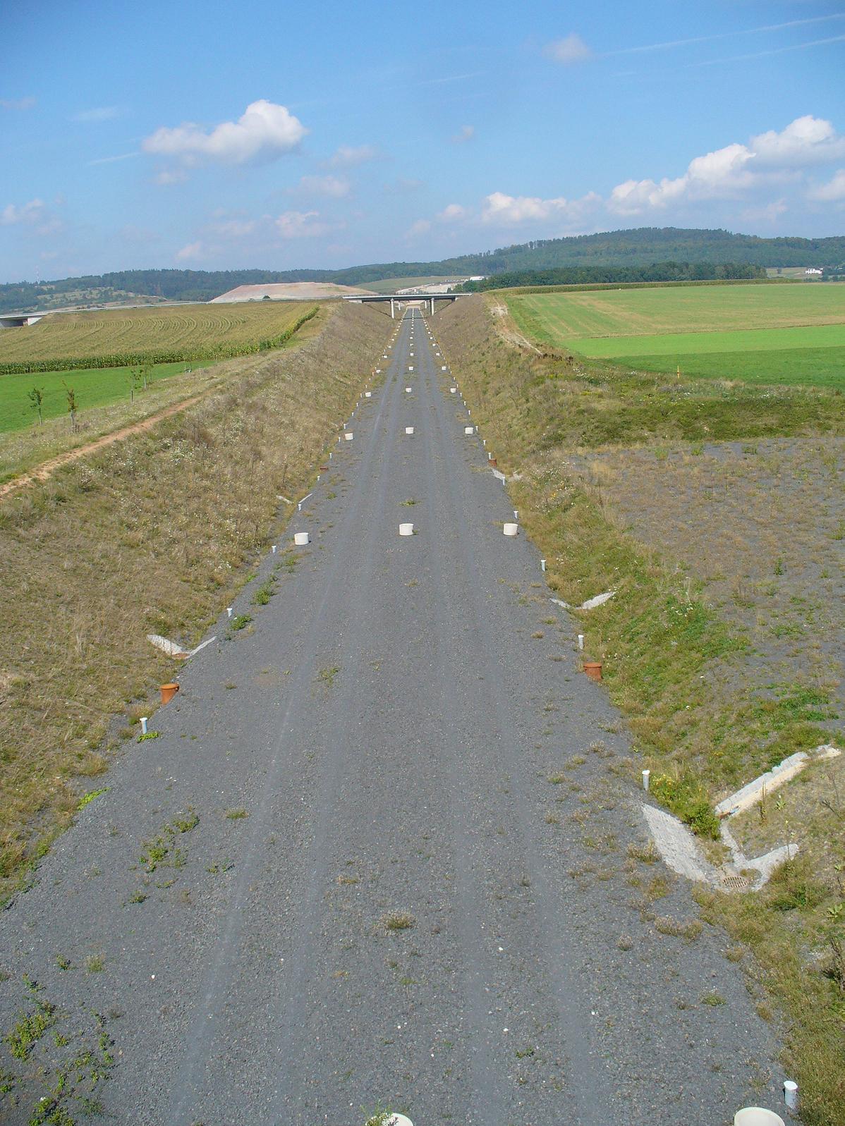 Der Tag begann mit schweren Beinen: Die Hügel des Vortags waren offensichtlich doch nicht ohne, die Höhenmeter mit Gepäckanhänger machten sich bemerkbar. Am Vormittag erneut eine lange Steigung.  Schon morgens waren die Temperaturen angenehm, und in der Folge entwickelte sich ein hochsommerlicher windstiller Tag. Überwiegend hügelig (etwa 350 Höhenmeter waren zu absolvieren), aber gut befahrbar. Die Etappe ist zum Teil nicht ausgeschildert, auch der Text im Radführer teilweise unzureichend, also wieder mal ein unbeabsichtigter Abstecher zu der Trasse der Schnellfahrstrecke Nürnberg–Erfurt bei Esbach. Zuvor hatte ich einen Abstecher zur „gebrannten Brücke“ an der Landesgrenze zwischen Thüringen und Bayern gemacht. Hier wurde am 1. Juli 1990 der Vertrag über die Abschaffung der Grenzkontrollen an der innerdeutschen Grenze unterzeichnet. Ich zitiere den bikeline-Radführer: „Noch 1945 wurde die „Gebrannte Brücke“ aufgrund ihrer Lage zwischen den Städten Sonneberg und Neustadt bei Coburg zum stehenden Begriff für die Auswirkungen der Deutschen Teilung. Ihr Symbolwert steigerte sich, als es während eines Fußballspiels zwischen einer Sonneberger und einer Neustadter Fußballmannschaft am 31. Juli 1949 zu einer Massenflucht über die Grenze kam.“ Auf dem Weg passierte ich auch das geschleifte Dorf Libau, und solch nette Flecken wie „Bächlein“, „Schaumbergwustung“, „Krötenwustung“ und „Mostholz“. Es war eine sehr verschlungene Teilstrecke mit wenig Nord-Südgewinn. Tag 19