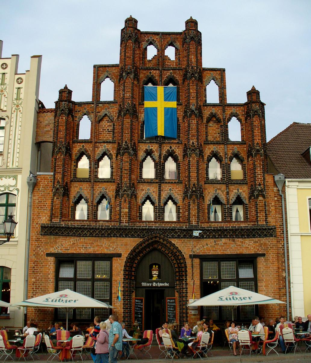 Gpx-Track:  Ich kam erst gegen 10 Uhr weg von Graal-Müritz, einem nicht sonderlichem schönem Ort, wie viele in diesem Abschnitt: Kilometerlange eintönige Strände mit Standkörben, die Orte mit Shopping-Malls verunstaltet. Und mit ungeheuer vielen Stechmücken. Mäßiger Gegenwind + gute Wege = gutes Vorwärtskommen. In Warnemünde fährt die Fähre sofort über den „Neuen Strom“. Überschwemmte Waldwege im Ostseebad Nienhagen, die Ausschilderung verbesserungsfähig, auch hier wie an anderen Stellen ist die Navi-Software am Handy von großem Vorteil. Die Ostseebäder Kühlungsborn und Rerik sind nicht sehr einladend, auch sind erst 60 km zurückgelegt und das Wetter fabelhaft, zum ersten Mal fahre ich mit kurzen Hosen, also weiter nach Wismar auf guten Radwegen mit wenig Wind.  Die Altstadt in Wismar ist sehr schön. Den vierten Tag hintereinander nehme ich eine Fischplatte. Die Scholle mundet besser als der aber auch nicht üble Rotbarsch. Tag 6