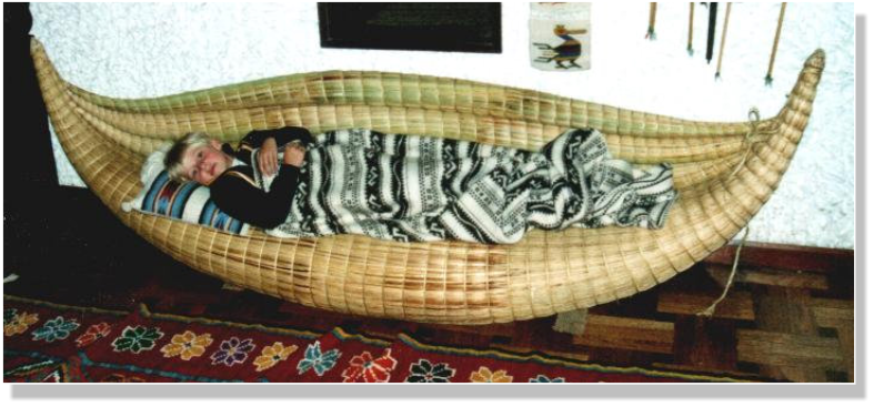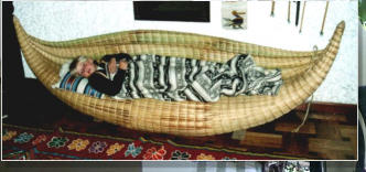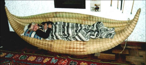 Alex auf dem Sofa aus Titicaca-See-Schilf. Hergestellt hat es für uns José