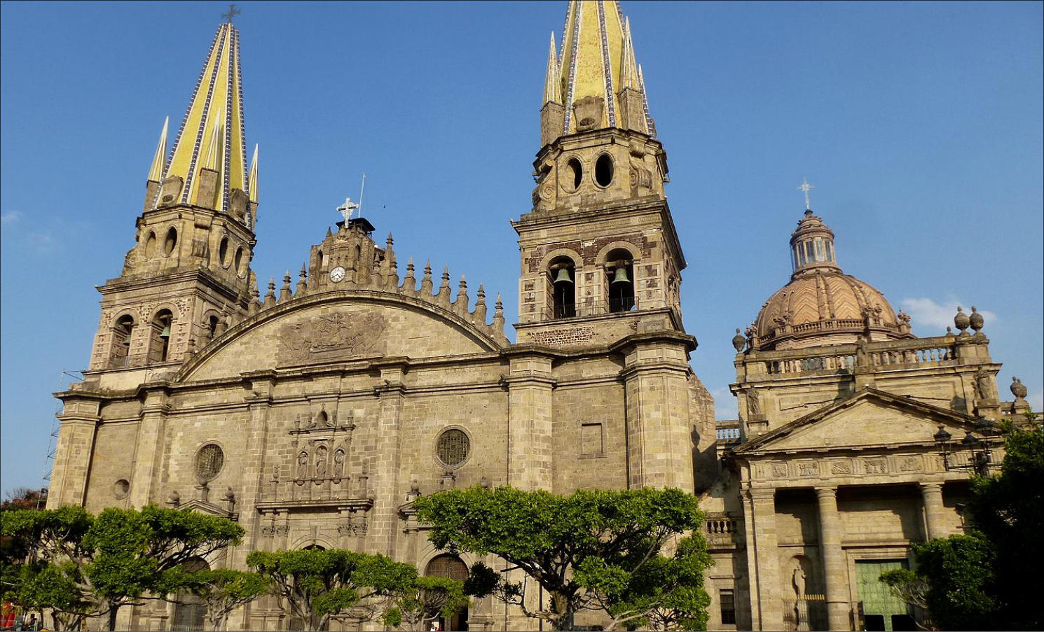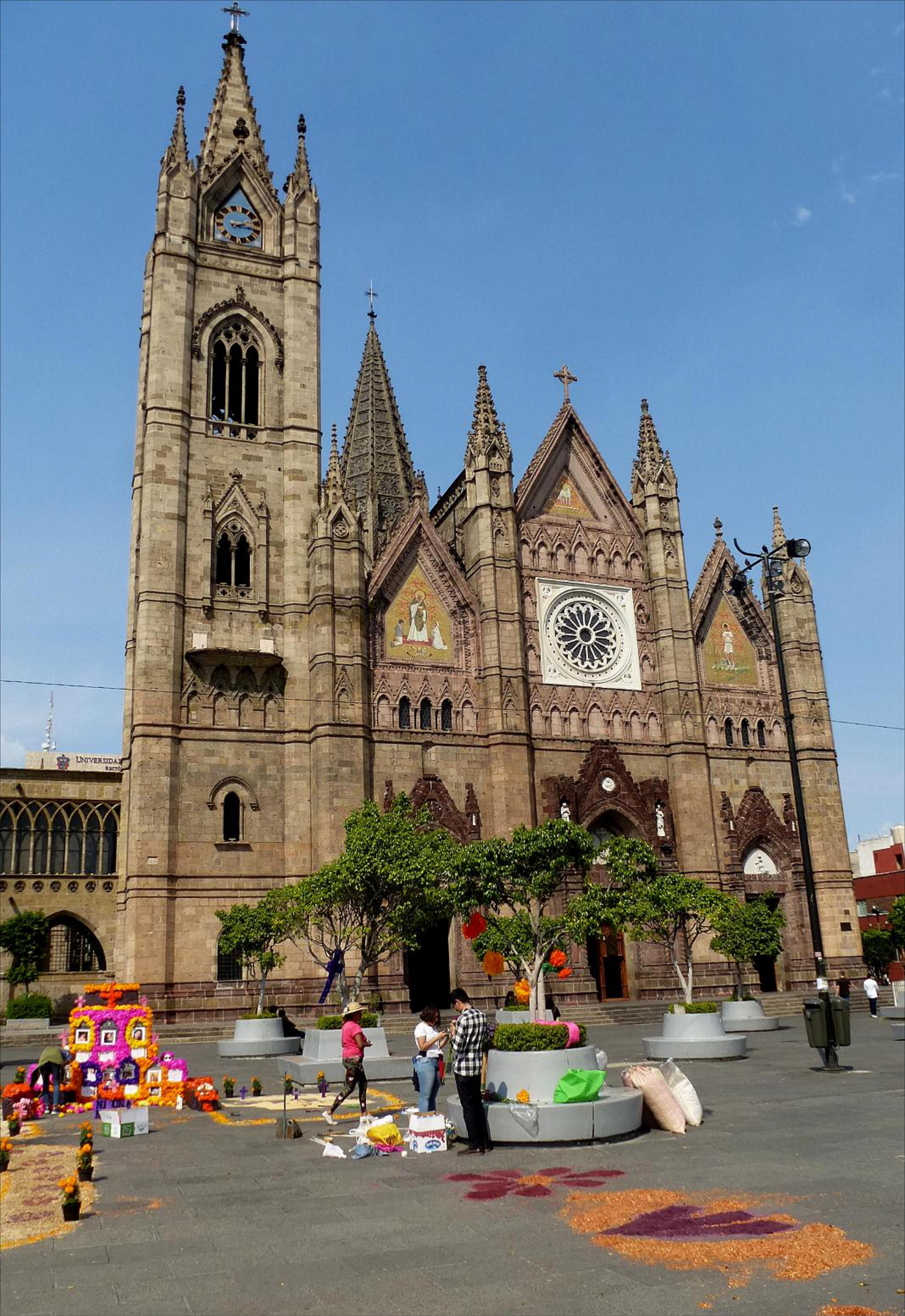 © strapp 2018 "Día de los muertos" in der Deutschen Schule Guadalajara Guadalajara ist auch bekannt unter dem Namen Perla del Occidente (spanisch für ‚Perle des Westens‘). Die Einwohner der Stadt werden als tapatíos bezeichnet. Die Stadt ist Ausgangspunkt vieler mexikanischer Traditionen wie der Musik der Mariachi. Templo Expiatorio del Santísimo Sacramento Templo Expiatorio del Santísimo Sacramento Templo Expiatorio del Santísimo Sacramento Templo Expiatorio del Santísimo Sacramento Templo Expiatorio del Santísimo Sacramento Templo Expiatorio del Santísimo Sacramento Kathedrale von Guadalajara Kathedrale von Guadalajara Guadalajara wurde 1532 unter dem Namen Espíritu Santo von den Spaniern unter der Führung von Nuño Beltrán de Guzmán gegründet und schachbrettartig angelegt. 1818 und 1875 wurde die Stadt von starken Erdbeben zerstört, aber immer wieder aufgebaut. Der Bau der Catedral Metropolitana wurde 1561 begonnen und 1618 abgeschlossen. Nachdem die Kirchtürme bei einem Erdbeben 1818 zerstört worden waren, erneuerte man sie im neugotischen Stil.