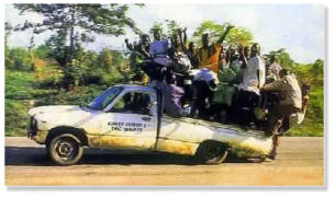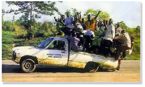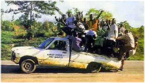 Straße, und die führt nach Timbuktu. Wieder laden wir das Gepäck auf das Dach eines Autos,